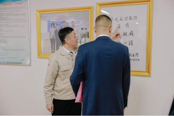 調(diào)研組一行還實(shí)地考察了福建省威諾數(shù)控有限公司“智能制造工廠”以及看望一線工作人員,威諾公司翁強(qiáng)董事長作具體介紹,介紹中,翁強(qiáng)董事長代表公司對全國工商聯(lián)及政府機(jī)關(guān)長期以來對威諾公司的關(guān)心支持表示感謝,并向領(lǐng)導(dǎo)介紹了公司的發(fā)展歷程、科技成果、產(chǎn)品、智能生產(chǎn)線、“獨(dú)角獸企業(yè)”,2030年目標(biāo)以及到2050年愿景。全國工商聯(lián)執(zhí)委嚴(yán)立淼同志在認(rèn)真聽取了企業(yè)的發(fā)展演變情況、企業(yè)發(fā)展現(xiàn)狀及面臨的困難和問題的同時(shí)對企業(yè)的未來發(fā)展設(shè)想、提出了寶貴意見、建議和要求,并高度肯定了公司取得的成績。嚴(yán)立淼同志指出,威諾公司在自主研發(fā)創(chuàng)新的道路上,真抓實(shí)干,爭當(dāng)表率,為莆田市科技經(jīng)濟(jì)產(chǎn)業(yè)化作出了重大貢獻(xiàn)和表率。鼓勵(lì)企業(yè)深化科技創(chuàng)新,不斷提升產(chǎn)品市場競爭力。
